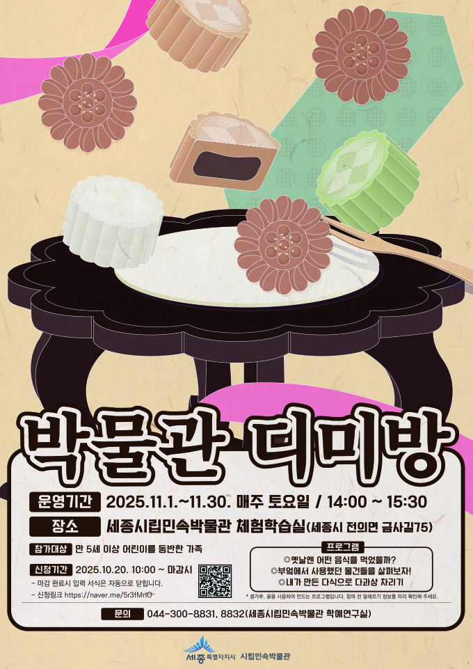 프로그램 관련 문의 사항은 세종시립민속박물관 학예연구실로 전화하면 된다.