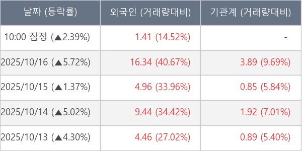 [서울=뉴스핌] 로보뉴스 = 17일 10시 15분 현재 SK아이이테크놀로지(361610)는 전일 대비 2.39% (현재가 32,150원) 상승했고, 외국인이 최근 6일 연속 순매수(누적 36.87만 주, 잠정) 행진을 하고 있다.