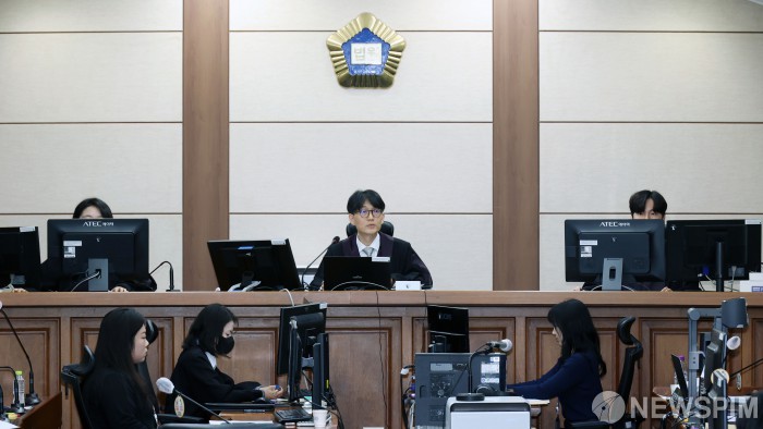 [서울=뉴스핌] 사진공동취재단 = 류경진 부장판사가 17일 서울 서초구 서울중앙지법에서 열린 이상민 전 행정안전부 장관 언론사 단전·단수, 위증, 내란중요임무종사 등 사건 첫 재판을 심리하고 있다. 2025.10.17 photo@newspim.com