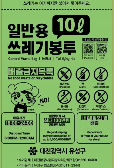 대전 유성구, '종량제봉투'에 외국어 안내문구 추가