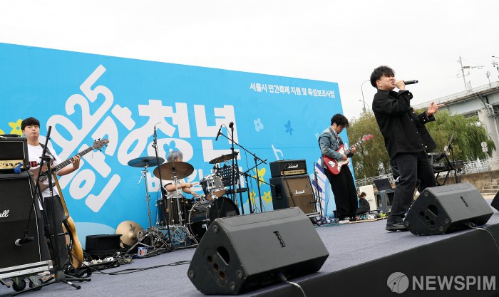 [서울=뉴스핌] 정일구 기자 = '히든스테이지 시즌3 TOP10' 널디나가 18일 오후 서울 서초구 반포한강공원 세빛섬 야외무대에서 감엔터테인먼트 주최로 열린 '2025 한강 청년 버스킹 축제'에서 라이브 공연을 선보이고 있다. 2025.10.18 mironj19@newspim.com