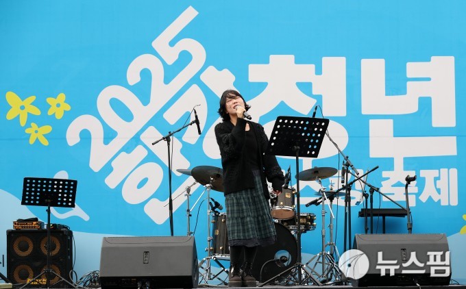 [서울=뉴스핌] 정일구 기자 = '히든스테이지 시즌3 TOP10' 오춘이 18일 오후 서울 서초구 반포한강공원 세빛섬 야외무대에서 감엔터테인먼트 주최로 열린 '2025 한강 청년 버스킹 축제'에서 라이브 공연을 선보이고 있다. 2025.10.18 mironj19@newspim.com |