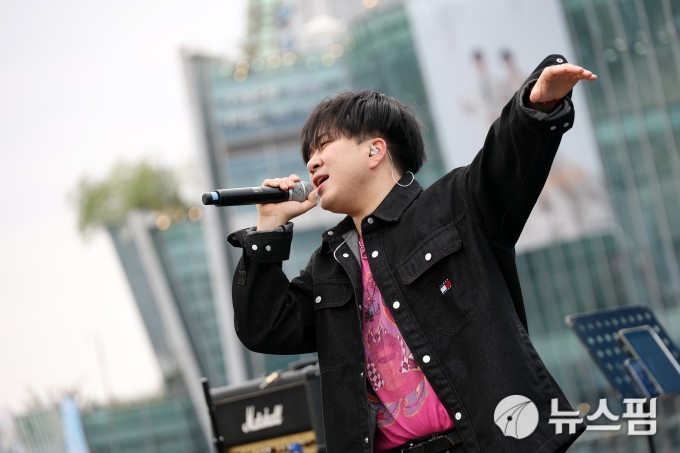[서울=뉴스핌] 정일구 기자 = '히든스테이지 시즌3 TOP10' 무화가 18일 오후 서울 서초구 반포한강공원 세빛섬 야외무대에서 감엔터테인먼트 주최로 열린 '2025 한강 청년 버스킹 축제'에서 라이브 공연을 선보이고 있다. mironj19@newspim.com 2025.10.18 |