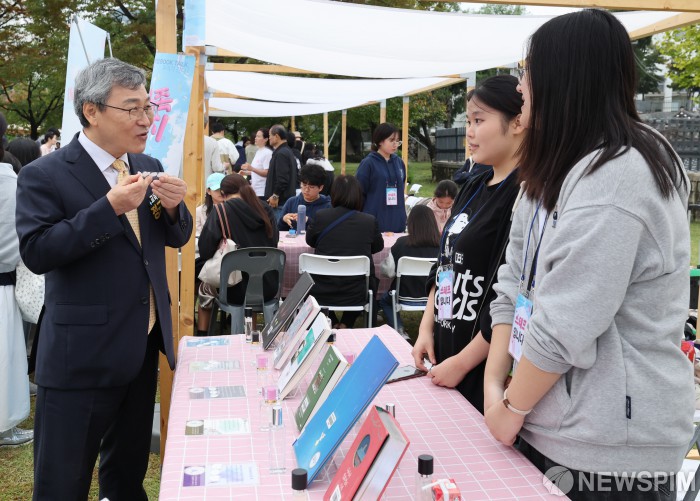 [서울=뉴스핌] 양윤모 기자 = 정근식 서울시교육감이 18일 오후 정독도서관 야외정원에서 열린 ‘제13회 온 가족 책 잔치’에 참석해 체험부스를 둘러보고 있다. 이번 행사는 서울시교육청 산하 도서관·평생학습관 23개관이 함께하는 참여형 독서문화 축제다. [사진=서울시교육청] 2025.10.18 yym58@newspim.com