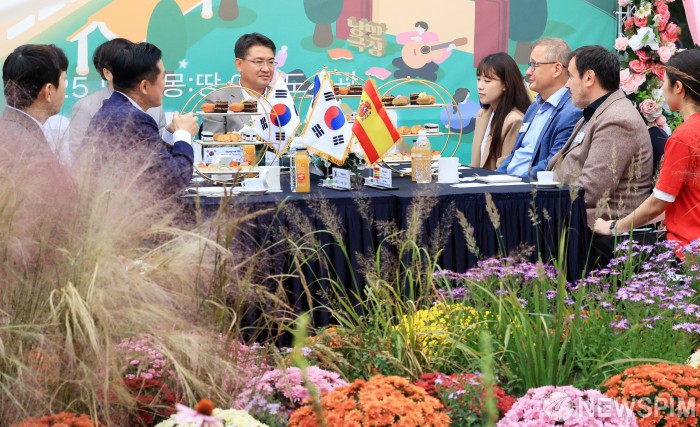 [서울=뉴스핌] 양윤모 기자 = 오승록 노원구청장이 18일 오후 서울 노원구 하계2동 경춘선숲길 일대에서 열‘2025 노원 북페스티벌’ 개막식 전에 얀차렉 주한 체코공화국 대사와 라파엘 부에노 마르티네즈 스페인 문화원장을 초대해 차담회를 갖고 있다. 노원 북페스티벌은 ‘몽:땅 야외도서관’이라는 컨셉으로 책과 예술, 그리고 휴식이 어우러진 도심 속 문화축제다. ‘꿈(夢)을 담은 땅(場) 위에서 모두에게 낭만을 보장하겠다’는 의미를 담아 기획됐으며 11월 2일까지 매주 금·토·일 총 9일간 경춘선숲길 일대에서 진행된다. [사진=노원구청] 2025.10.18 yym58@newspim.com