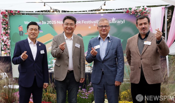 [서울=뉴스핌] 양윤모 기자 = 오승록 노원구청장이 18일 오후 서울 노원구 하계2동 경춘선숲길 일대에서 열린 '2025 노원 북페스티벌’ 개막식 전에 손영준 노원구의장,얀차렉 주한 체코공화국 대사,라파엘 부에노 마르티네즈 스페인 문화원장과 기념촬영을 하고 있다. 노원 북페스티벌은 ‘몽:땅 야외도서관’이라는 컨셉으로 책과 예술, 그리고 휴식이 어우러진 도심 속 문화축제다. ‘꿈(夢)을 담은 땅(場) 위에서 모두에게 낭만을 보장하겠다’는 의미를 담아 기획됐으며 11월 2일까지 매주 금·토·일 총 9일간 경춘선숲길 일대에서 진행된다. [사진=노원구청] 2025.10.18 yym58@newspim.com