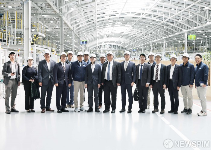 [서울=뉴스핌] 김정관 산업통상부 장관이 18일(현지시간) 미국 조지아주 서배나에 위치한 현대자동차 공장을 방문해 자동차 생산공정을 둘러보고 있다. [사진=산업통상자원부] 2025.10.19 photo@newspim.com