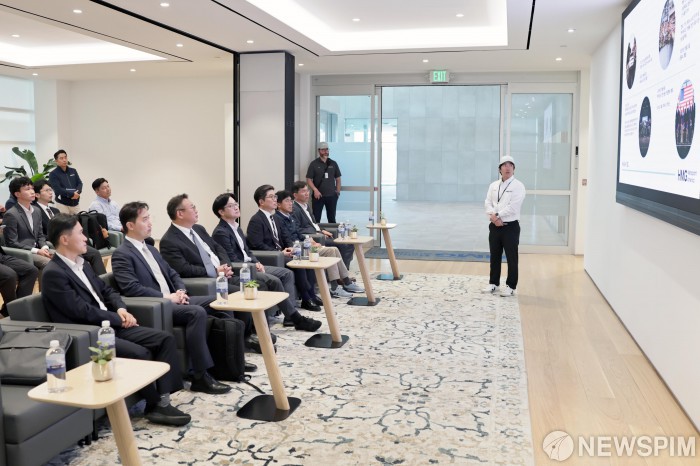 [서울=뉴스핌] 김정관 산업통상부 장관이 18일(현지시간) 미국 조지아주 서배나에 위치한 현대자동차 공장을 방문해 자동차 생산공정을 둘러보고 현장 관계자들을 격려하고 있다. [사진=산업통상자원부] 2025.10.19 photo@newspim.com