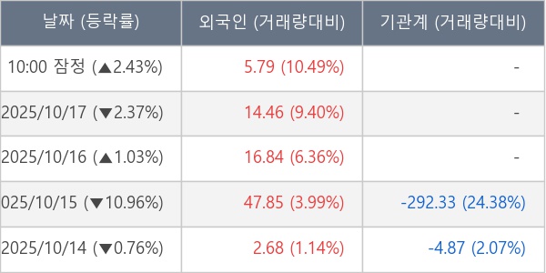 [표] 외국인ㆍ기관 순매매량 (단위 만주)