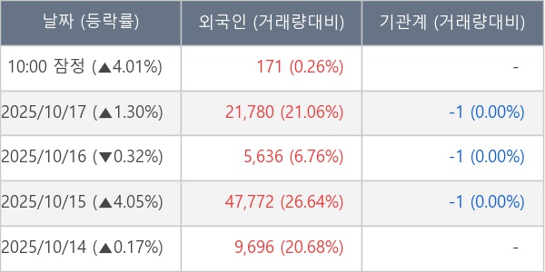 [표] 외국인ㆍ기관 순매매량 (단위 주)
