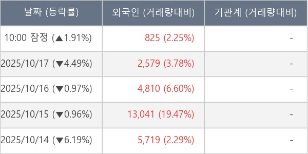 [표] 외국인ㆍ기관 순매매량 (단위 주)