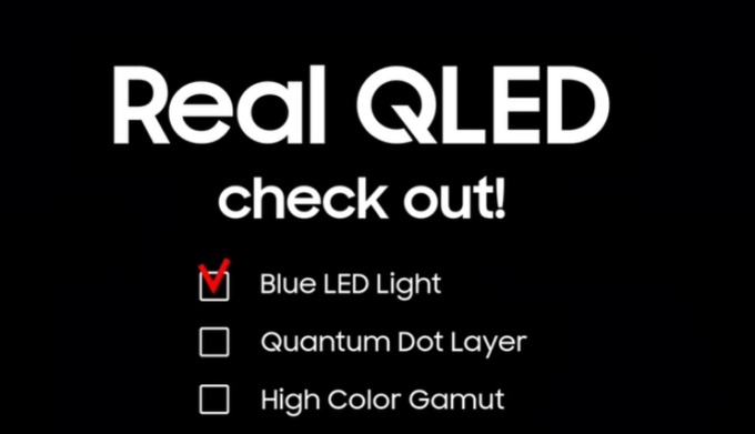 두 번째 영상 '진짜 QLED를 찾고 계신가요'는 풍자 대신 교육적 설명에 초점을 맞췄다. 영상 속에는 'Real QLED check out!'이라는 문구와 함께 ▲블루 LED 광원(Blue LED Light) ▲퀀텀닷 레이어 ▲고색재현율 등 QLED가 갖춰야 할 세 가지 핵심 요소가 등장한다.
