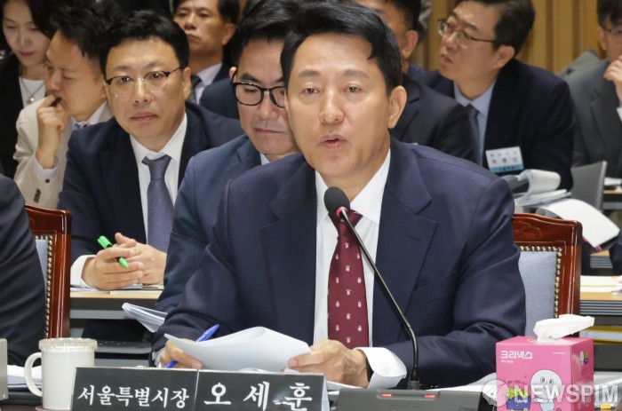 [서울=뉴스핌] 양윤모 기자 = 오세훈 서울시장이 20일 오전 서울시청에서 열린 국회 국토교통위원회 서울시 국정감사에 출석해 답변을 하고 있다. 2025.10.20 yym58@newspim.com |
