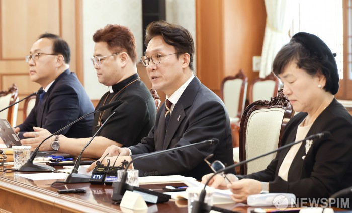 [서울=뉴스핌] 이길동기자=김민석 국무총리가 20일 오후 서울 종로구 정부서울청사에서 열린 제2차 이태원 참사 추모 위원회를 주재하며 모두 발언하고 있다.2025.10.20 gdlee@newspim.com