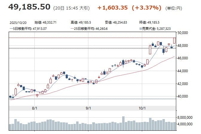 [서울=뉴스핌] 오영상 기자 = 20일 닛케이주가는 다카이치 사나에 자민당 총재가 총리에 취임할 것이란 기대감에 이른바 '다카이치 트레이드'가 재점화되며 사상 처음으로 4만9000엔선을 돌파했다.