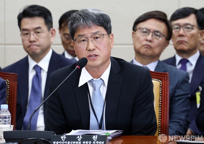 [서울=뉴스핌] 최지환 기자 = 반상권 방송미디어통신위원회 위원장 직무대리가 20일 오후 국회 과학기술정보방송통신위원회에서 열린 방송미디어통신위원회 관련(YTN,TBS,연합뉴스TV) 국정감사에서 의원 질의에 답변하고 있다. 2025.10.20 choipix16@newspim.com