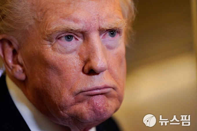 도널드 트럼프 미국 대통령이 2025년 10월 19일(현지시간) 미국 플로리다에서 워싱턴으로 향하는 전용기 에어포스원(Air Force One) 안에서 언론과 대화하며 기자들을 바라보고 있다. [사진=로이터 뉴스핌] |