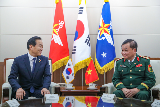 이두희 국방부차관(왼쪽)이 지난달 11일 오후 서울 용산 국방부에서 호앙 쑤안 찌엔 베트남 국방차관(오른쪽)과 제12차 한·베트남 국방전략대화를 갖고 있다. [사진=국방일보 제공] 2025.10.20 gomsi@newspim.com |