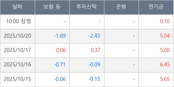 [표] 주요 기관별 순매매량 (단위 만주)