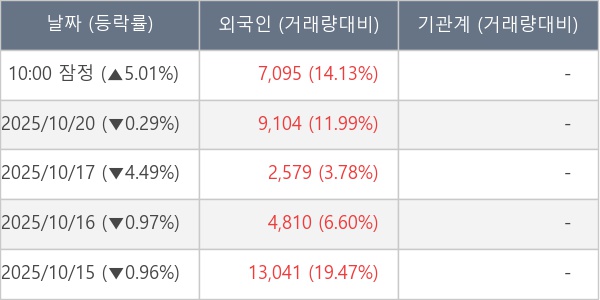 [표] 외국인ㆍ기관 순매매량 (단위 주)