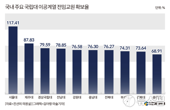 국내 주요 국립대 이공계열 전임교원 확보율. [사진=김아랑 미술기자] |