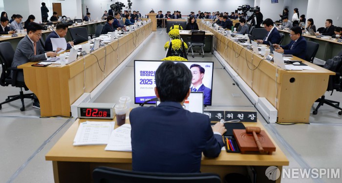 [수원=뉴스핌] 류기찬 기자 = 21일 오후 경기 수원시 경기도청에서 국회 행정안전위원회의 경기도에 대한 국정감사가 진행되고 있다. 2025.10.21 ryuchan0925@newspim.com