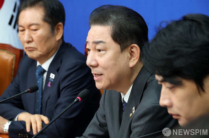 [서울=뉴스핌] 정일구 기자 = 김병기 더불어민주당 원내대표가 22일 오전 서울 여의도 국회에서 열린 최고위원회의에서 모두발언을 하고 있다. 2025.10.22 mironj19@newspim.com