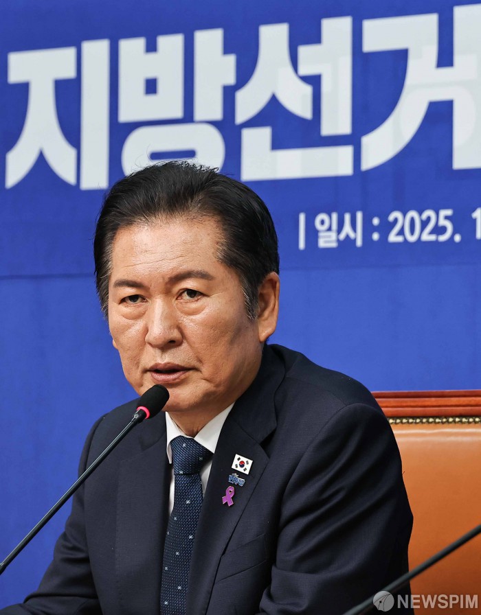 [서울=뉴스핌] 윤창빈 기자 = 정청래 더불어민주당 대표가 22일 오전 서울 여의도 국회에서 열린 더불어민주당 지방선거기획단 3차 회의에서 모두발언을 하고 있다. 2025.10.22 pangbin@newspim.com