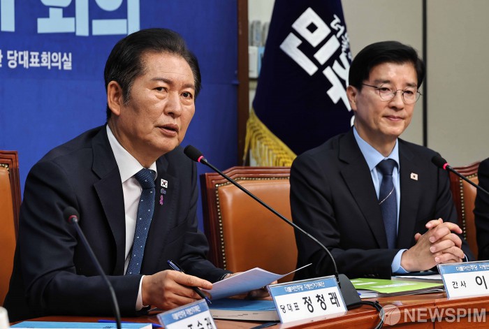 [서울=뉴스핌] 윤창빈 기자 = 정청래 더불어민주당 대표가 22일 오전 서울 여의도 국회에서 열린 더불어민주당 지방선거기획단 3차 회의에서 모두발언을 하고 있다. 2025.10.22 pangbin@newspim.com