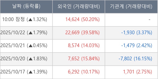 [서울=뉴스핌] 로보뉴스 = 23일 10시 15분 현재 JW중외제약(001060)은 전일 대비 1.32% (현재가 23,100원) 상승했고, 외국인이 최근 5일 연속 순매수(누적 59,811주, 잠정) 행진을 하고 있다.