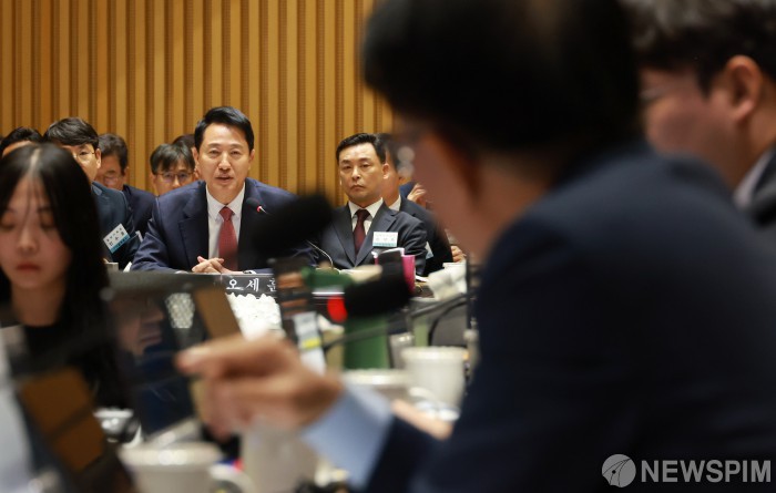 [서울=뉴스핌] 김학선 기자 = 오세훈 서울시장이 23일 서울시청에서 열린 국회 행정안전위원회 서울시 국정감사에서 명태균씨와 관련한 권칠승 더불어민주당 의원의 질의에 답하고 있다. 2025.10.23 yooksa@newspim.com