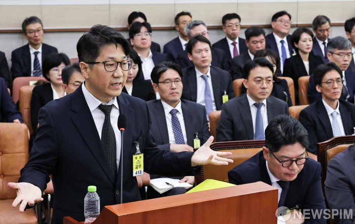 [서울=뉴스핌] 윤창빈 기자 = 문지석 광주지검 부장검사가 23일 오전 서울 여의도 국회에서 열린 법제사법위원회의 서울고등검찰청 등에 대한 국정감사에서 의원 질문에 답변하고 있다. 2025.10.23 pangbin@newspim.com
