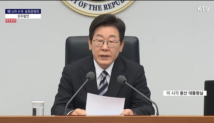 이재명 대통령이 23일 용산 대통령실에서 주재한 제14차 수석보좌관회의에서 발언하고 있다. [사진=KTV 캡쳐] |