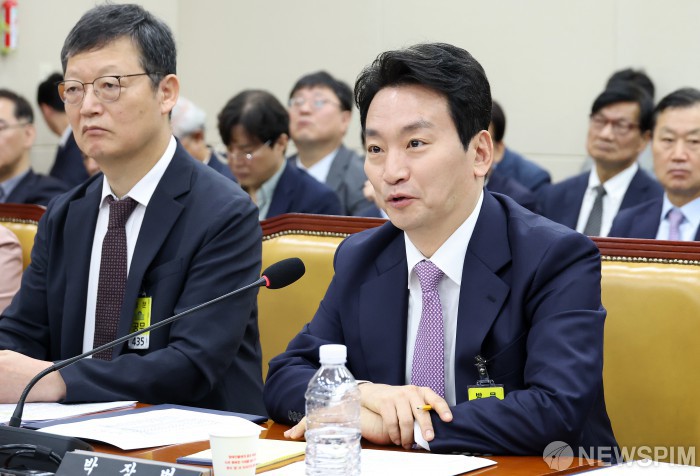 [서울=뉴스핌] 정일구 기자 = 박장범 한국방송공사(KBS) 사장이 23일 오전 서울 여의도 국회 과학기술정보방송통신위원회에서 열린 한국방송공사 등에 대한 국정감사에서 의원 질의에 답하고 있다. 2025.10.23 mironj19@newspim.com |