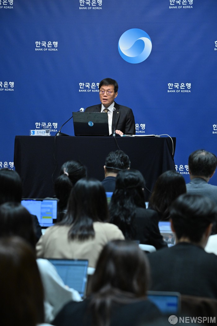 [서울=뉴스핌] 사진공동취재단 = 이창용 한국은행 총재가 23일 오전 서울 중구 한국은행에서 열린 금융통화위원회 본회의 후 기자간담회를 하고 있다. 2025.10.23 photo@newspim.com |