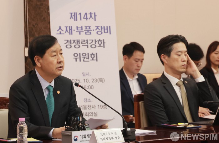 [서울=뉴스핌] 이길동 기자 = 구윤철 부총리 겸 기획재정부 장관이 23일 오후 서울 종로구 정부서울청사에서 열린 제14차 소재·부품·장비 경쟁력강화위원회를 주재하며 모두 발언을 하고 있다. 2025.10.23 gdlee@newspim.com