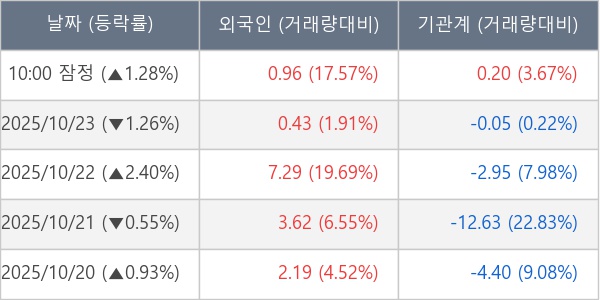 [표] 외국인ㆍ기관 순매매량 (단위 만주)
