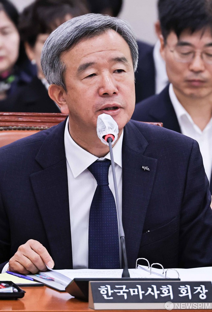 [서울=뉴스핌] 윤창빈 기자 = 정기환 한국마사회장이 24일 오전 서울 여의도 국회에서 열린 농림축산해양수산위원회의 농업협동조합중앙회 등에 대한 국정감사에서 의원 질문에 답변하고 있다. 2025.10.24 pangbin@newspim.com