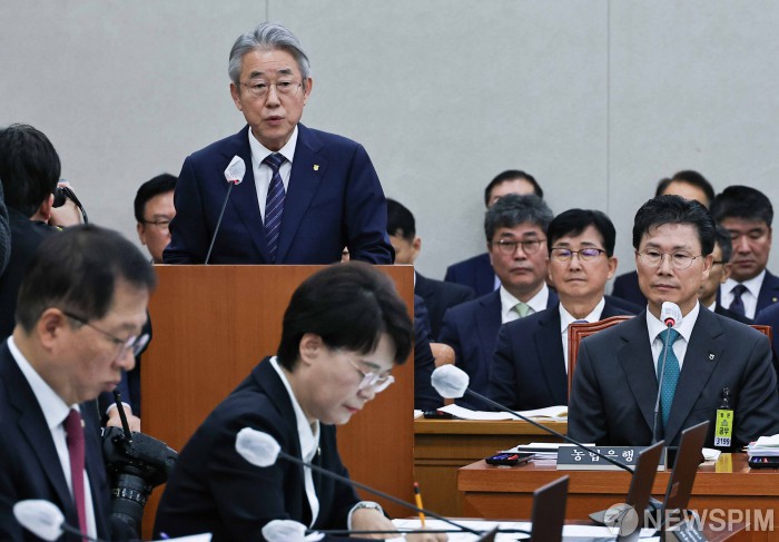 [서울=뉴스핌] 윤창빈 기자 = 강호동 농업협동조합중앙회장이 24일 오전 서울 여의도 국회에서 열린 농림축산해양수산위원회의 농업협동조합중앙회 등에 대한 국정감사에서 업무보고를 하고 있다. 2025.10.24 pangbin@newspim.com
