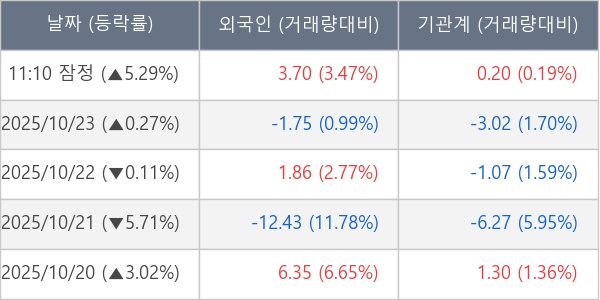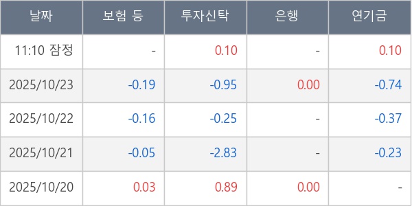 [표] 주요 기관별 순매매량 (단위 만주)