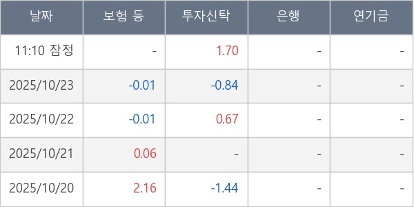 [표] 주요 기관별 순매매량 (단위 만주)
