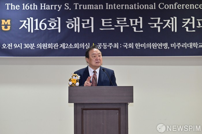[서울=뉴스핌] 김학선 기자 = 24일 오전 서울 영등포구 국회의원회관 제2소회의실에서 열린 제16회 해리 트루먼 국제 컨퍼런스에서 정대철 헌정회장이 개회사를 하고 있다. 올해로 16번째를 맞이한 트루먼 컨퍼런스는 한국전 당시 미주리 출신 미국 제33대 대통령 해리 트루먼의 한미 관계와 우호 증진에 기여한 업적을 기리기 위해 개최되는 국제회의로 미국의 미주리대학과 한국에서 2년에 한 번씩 교차로 개최돼 왔다. 한미의원연맹과 미주리대학이 공동으로 개최한 올해 컨퍼런스는 광복 80주년을 맞아 '변화, 혁신, 미래를 향한 한미 협력'을 주제로 민주주의 발전과 원자력, AI 등 한미 과학기술을 논의한다. 2025.10.24 yooksa@newspim.com
