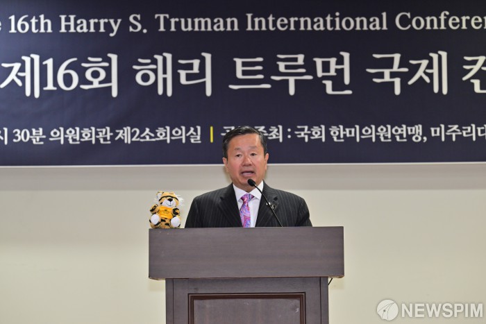 [서울=뉴스핌] 김학선 기자 = 24일 오전 서울 영등포구 국회의원회관 제2소회의실에서 열린 제16회 해리 트루먼 국제 컨퍼런스에서 최문영 미주리대 전교 총장이 개회사를 하고 있다. 올해로 16번째를 맞이한 트루먼 컨퍼런스는 한국전 당시 미주리 출신 미국 제33대 대통령 해리 트루먼의 한미 관계와 우호 증진에 기여한 업적을 기리기 위해 개최되는 국제회의로 미국의 미주리대학과 한국에서 2년에 한 번씩 교차로 개최돼 왔다. 한미의원연맹과 미주리대학이 공동으로 개최한 올해 컨퍼런스는 광복 80주년을 맞아 '변화, 혁신, 미래를 향한 한미 협력'을 주제로 민주주의 발전과 원자력, AI 등 한미 과학기술을 논의한다. 2025.10.24 yooksa@newspim.com