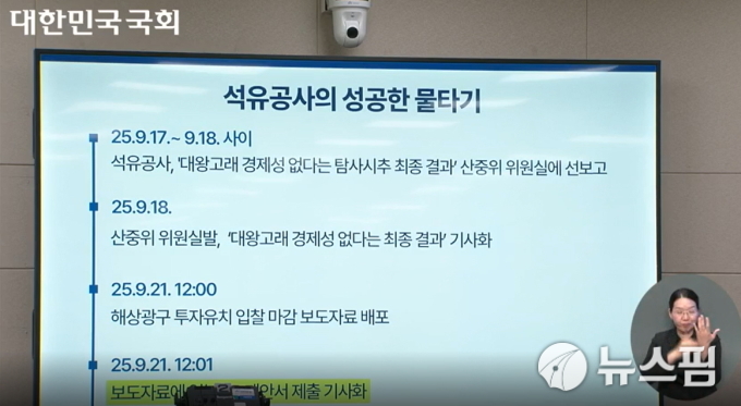 | 한국석유공사의 '대왕고래' 프로젝트 홍보를 지적하는 내용 [자료=김한규 의원실] 2025.10.24 dream@newspim.com |