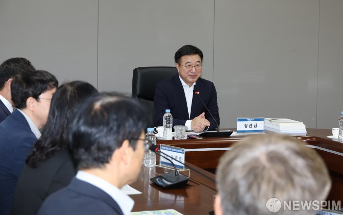 [서울=뉴스핌] 윤호중 행정안전부 장관이 24일 오전 충남 공주시 사곡면에 있는 국가재난안전교육원을 방문해 업무보고를 받고 교육원 운영 현황을 청취하고 있다. [사진=행정안전부] 2025.10.24 photo@newspim.com