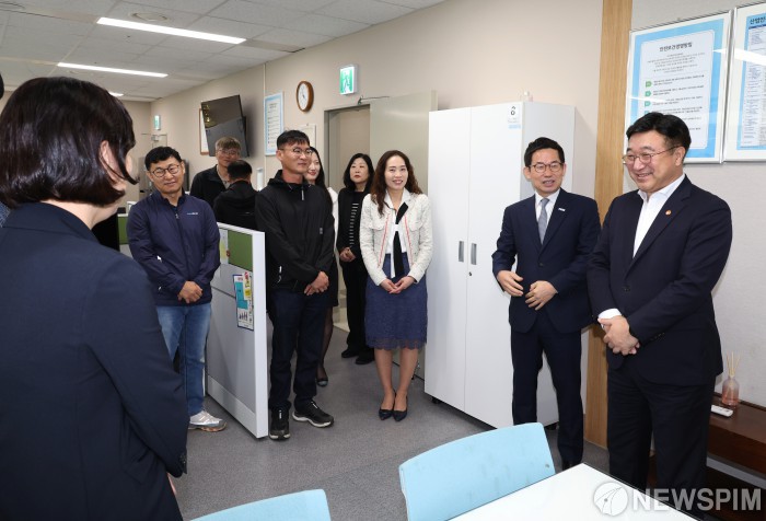 [서울=뉴스핌] 윤호중 행정안전부 장관이 24일 오전 충남 공주시 사곡면에 있는 국가재난안전교육원을 방문해 업무보고를 받은 뒤 재난대응 교육훈련 강화를 당부하고 직원들을 격려하고 있다. [사진=행정안전부] 2025.10.24 photo@newspim.com