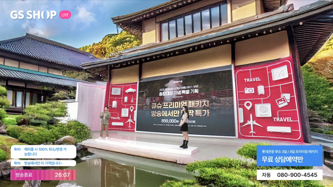 AI 스튜디오로 일본 정원과 건축물을 연출한 일본 여행 상품 방송 장면. [사진=GS샵 제공]