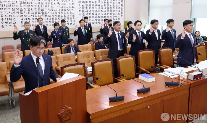 [서울=뉴스핌] 정일구 기자 = 오동운 고위공직자범죄수사처장이 24일 오후 서울 여의도 국회 법제사법위원회에서 열린 고위공직자범죄수사처(공수처)에 대한 국정감사에서 증인선서를 하고 있다. 2025.10.24 mironj19@newspim.com