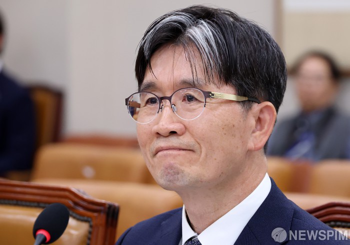 [서울=뉴스핌] 정일구 기자 = 오동운 고위공직자범죄수사처장이 24일 오후 서울 여의도 국회 법제사법위원회에서 열린 고위공직자범죄수사처(공수처)에 대한 국정감사에서 의원 질의를 경청하며 미소 짓고 있다. 2025.10.24 mironj19@newspim.com