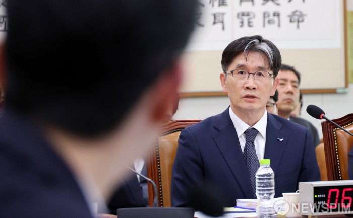[서울=뉴스핌] 정일구 기자 = 오동운 고위공직자범죄수사처장이 24일 오후 서울 여의도 국회 법제사법위원회에서 열린 고위공직자범죄수사처(공수처)에 대한 국정감사에서 의원 질의에 답하고 있다. 2025.10.24 mironj19@newspim.com